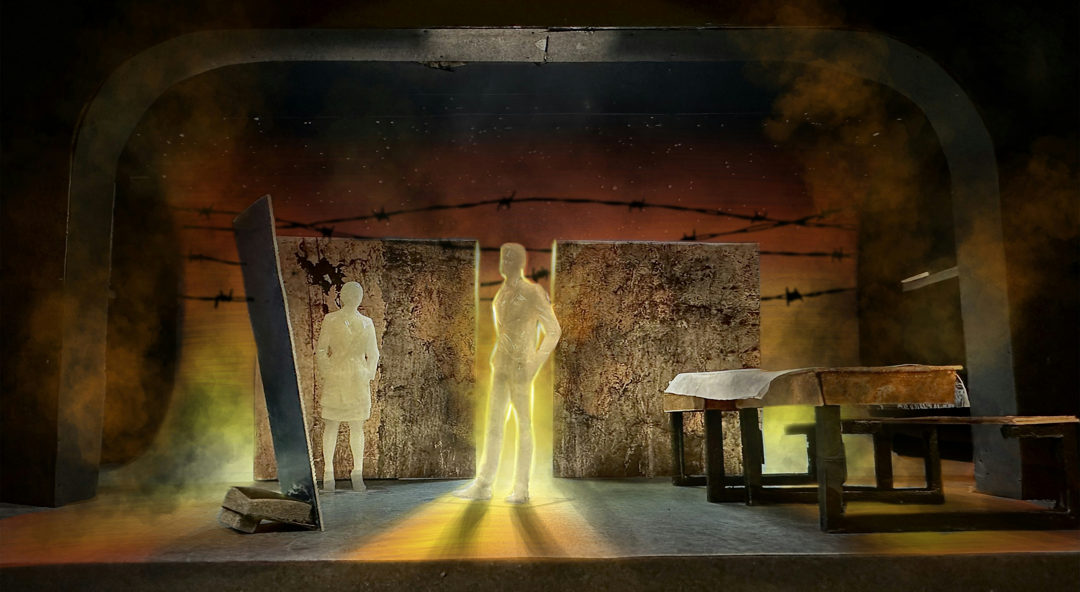 Excited to share photos from ‘In the Mouth of the Wolf’ a new Michael Morpurgo play, adapted from his book by Simon Reade, that I set and costume designed at The Barn Theatre. Brilliant to work with Michael Morpurgo again and a welcome surprise him attending my design presentation at the start of rehearsals!