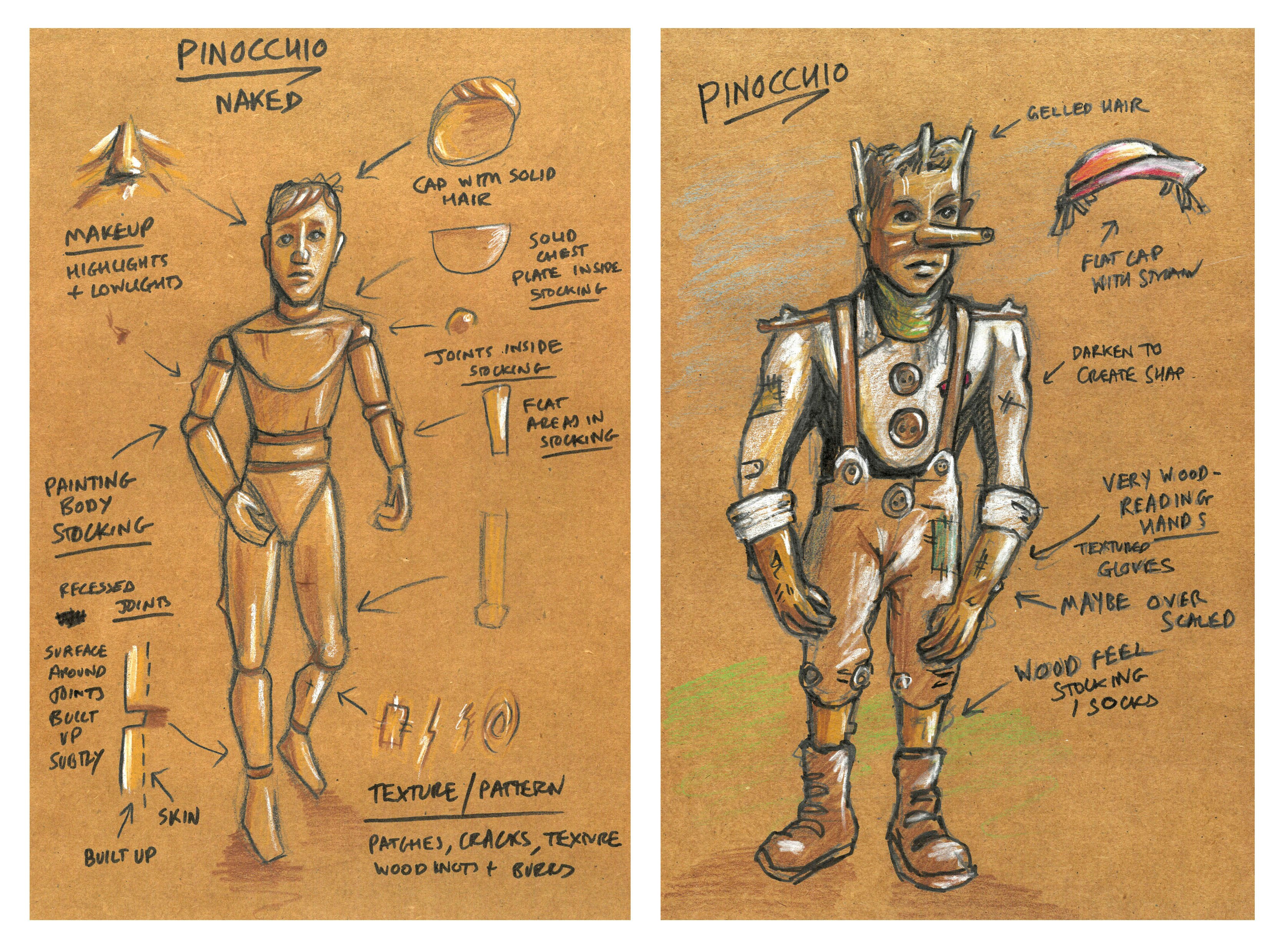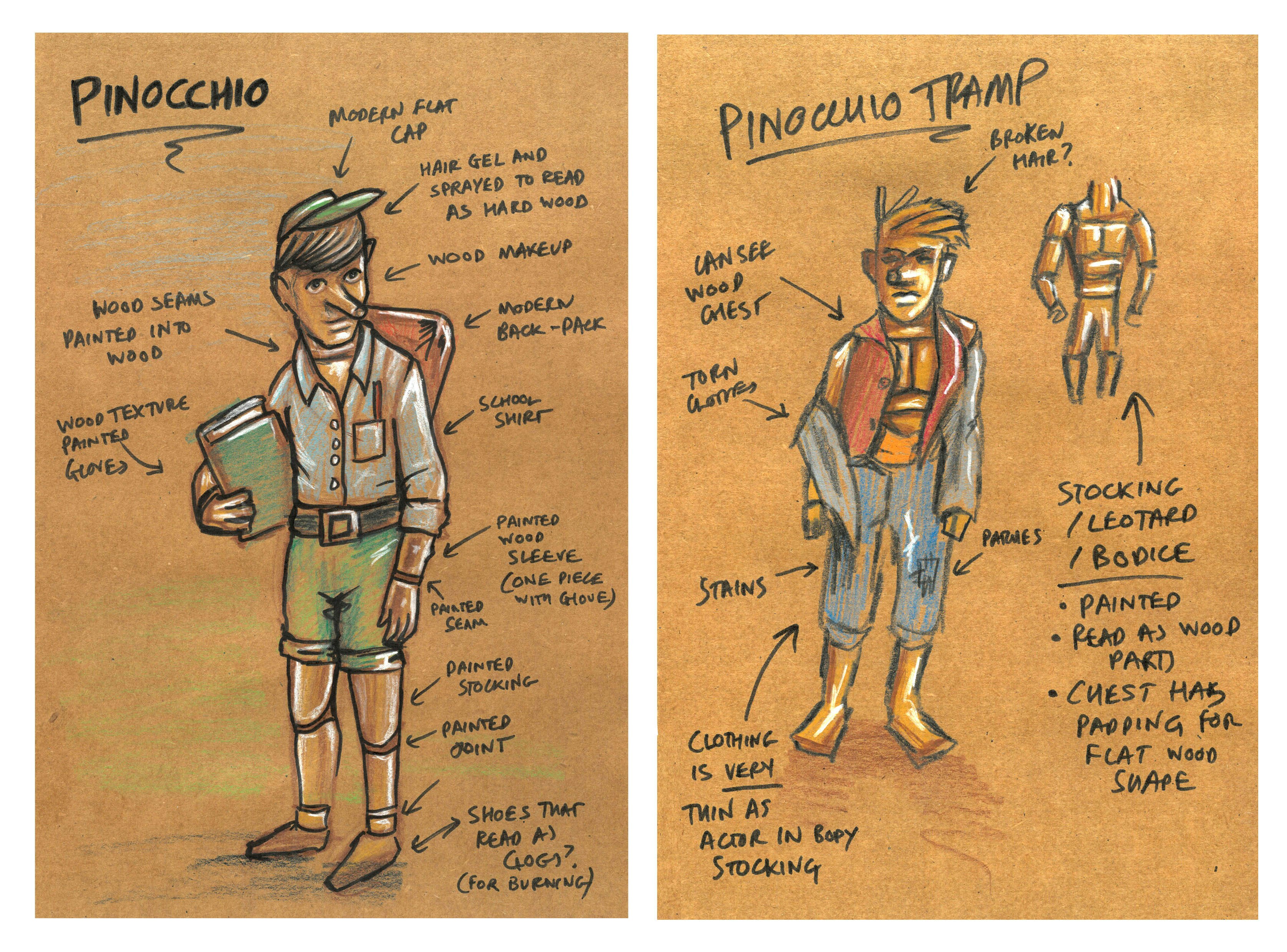It was really fun designing the costumes for PINOCCHIO and working with Hannah and the brilliant team at the Watermill. The intention was to recycle as much as possible, so raided the stores there and layered and stitched outfits together, broke them down, gave them a spin, resulting in a left-field, old/new feel.