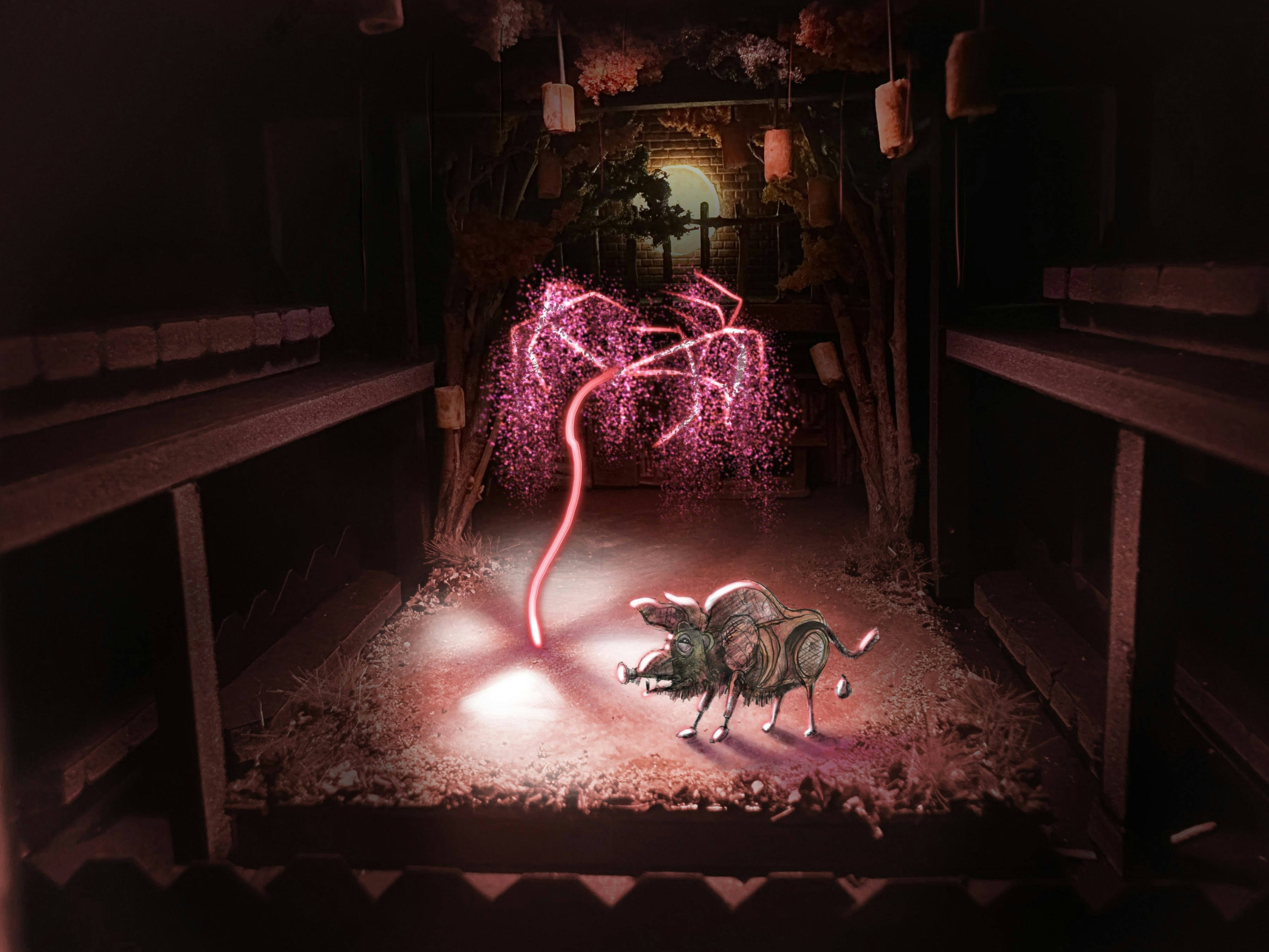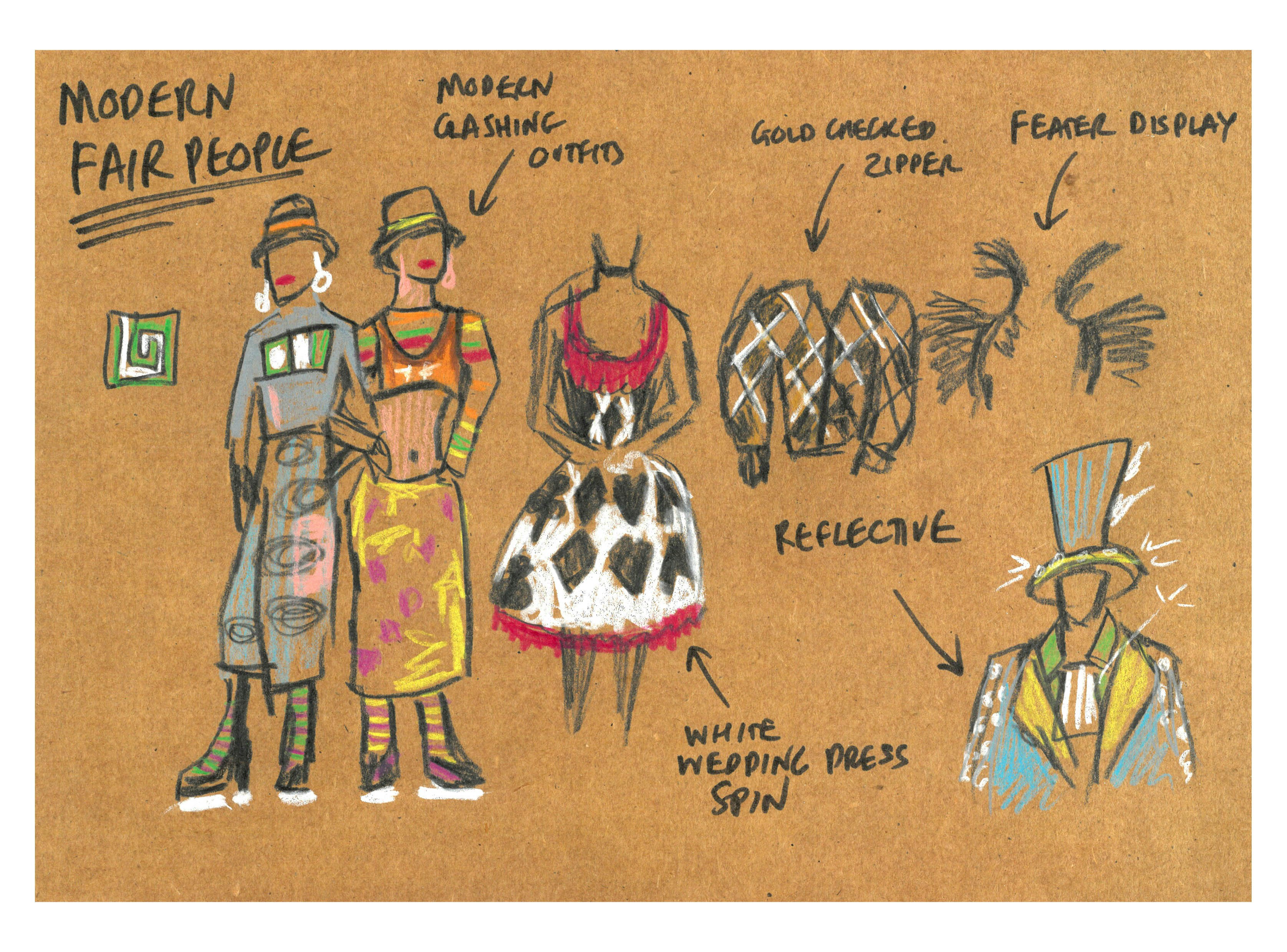 The creative team has been brilliantly led by the directors Indiana Lown-Collins and Elle While, who brought me on board and gave me license to really stretch and try out all my barmy ideas. The costume team was led by the brilliant Hannah Gilbert, who worked miracles riffing on my design with her team - Zara Palmer, Sophie Canniffe and Caz Williams. The set was made by the carpentry wizard Richard Martin at Ridiculous Solutions in Ilfracombe, who went out with tree surgeons for the trees in the set - picking those coming down already due to die-back and coppicing. The puppetry was designed, made and directed by the mighty Marc Parret, a true puppetry maestro and double plaid-shirt rocker. Lighting design by the excellent Jonathan Chan.