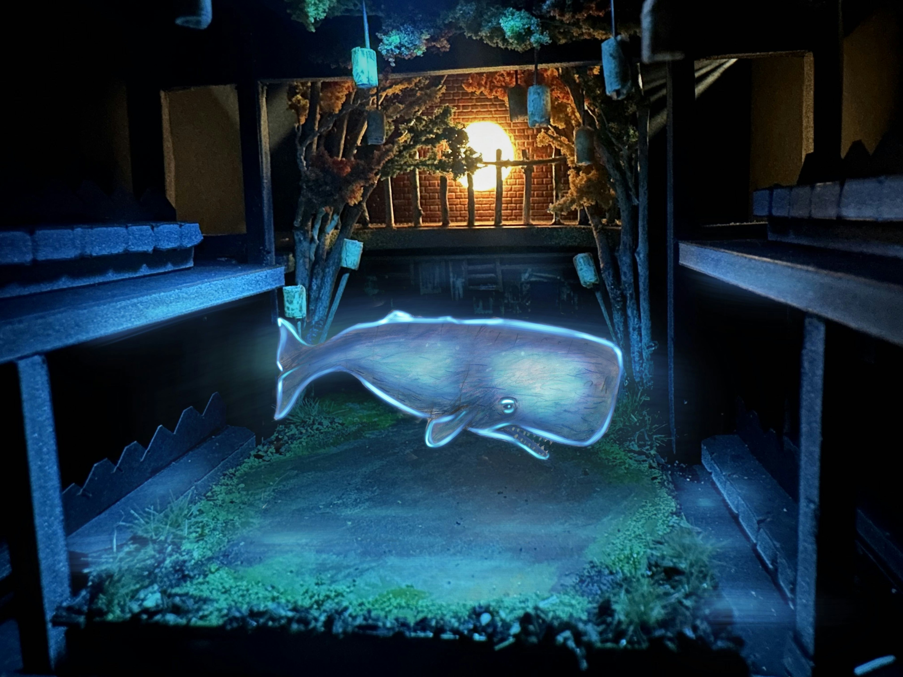 Working at the Watermill has been a bit of a dream. A legendary little theatre, set in a nature reserve with a river running through a gorgeous, weathered old wood building. The space shimmers with theatre magic and the team are all lovely, collaborative and in the service of great work. A real treat. Here's a lovely puppetry sequence with our whale: