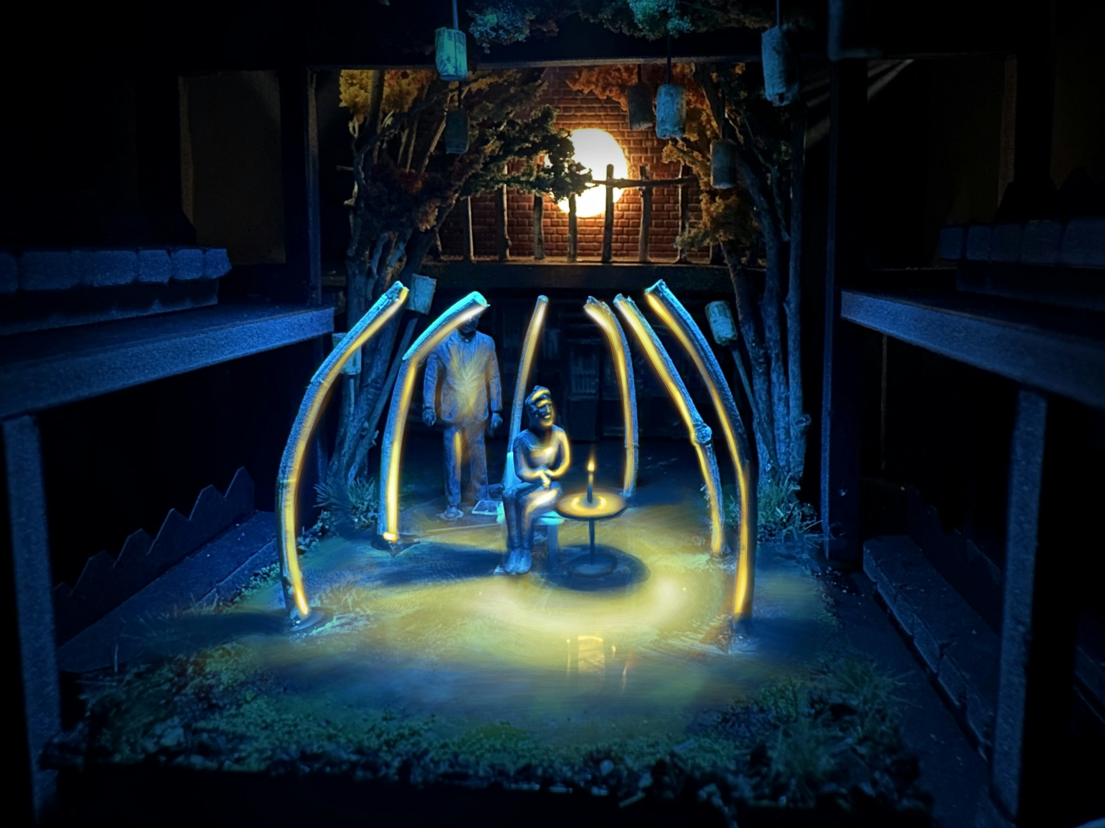 Thought I'd share a few model box and storyboard images. I draw on top of my model box photos to add staging details. I find it a nice, quick, but evocative and lively way to work: